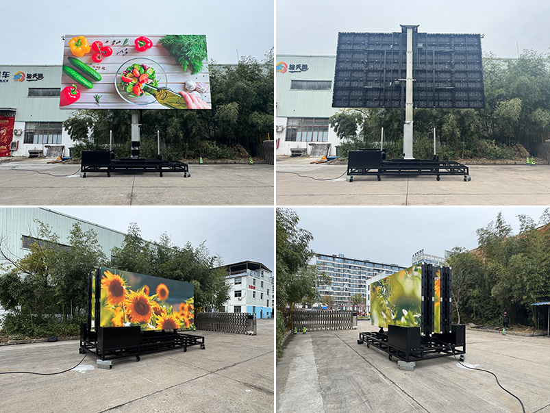 随着全球户外广告行业的快速发展,海外市场对广告设备的需求正在发生深刻变化。景川易车洞察时长需求,打造30平米无底盘折叠LED屏系统,适配外贸出口,推出“只买屏幕结构、不买底盘”的轻量化采购模式,以差异化优势抢占海外市场蓝海。