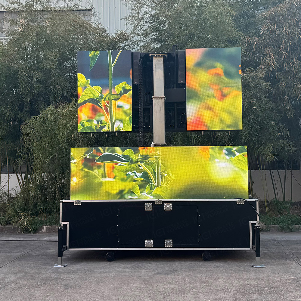 10 分钟快速部署:搭载一键遥控智能系统,屏幕展开、液压升降、屏幕折叠等功能,从开箱到亮屏仅需10分钟,收纳效率同步提升,大幅压缩场地筹备与撤离周期。